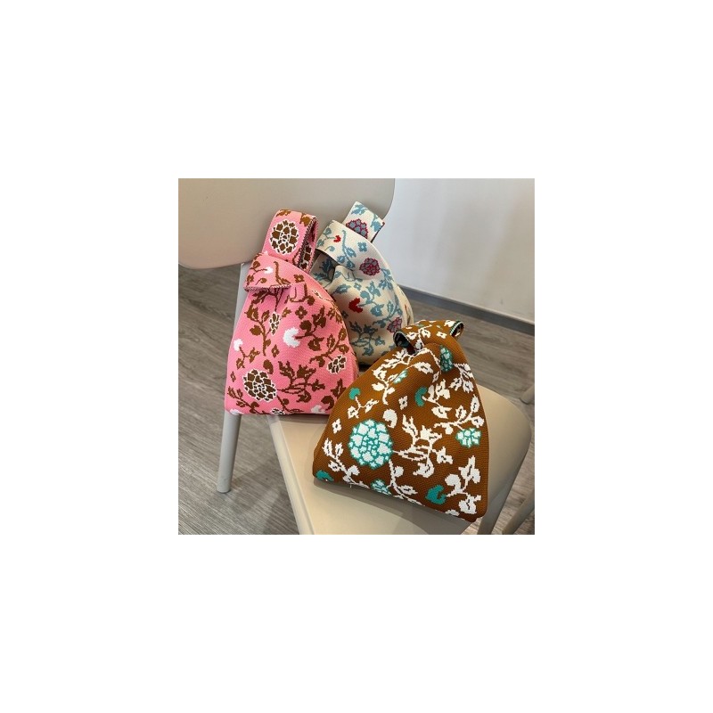 Japanese Niche Floral Knitted Handbag Female Handbag Retro Wrist Bag Shoulder Bag Casual Reusable Shopping Bags Women Purse Gift