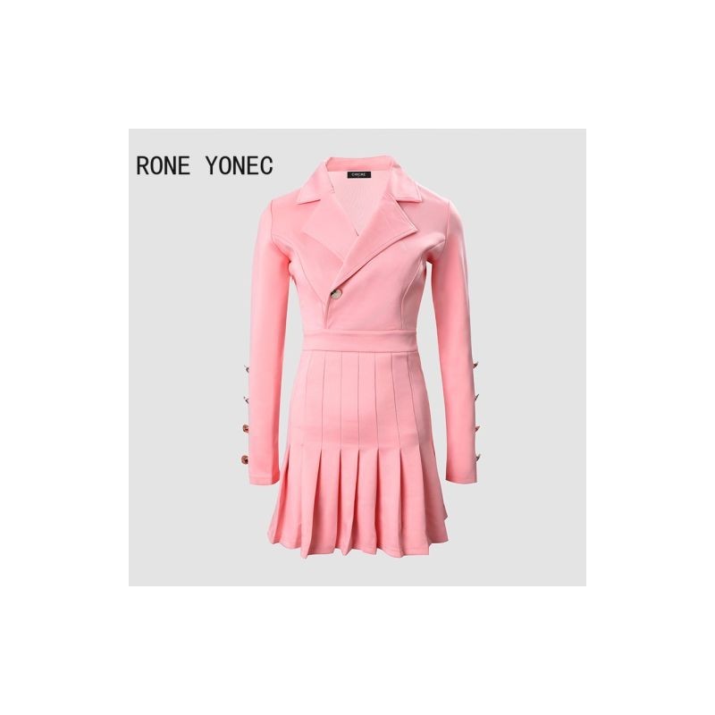 Women Elegant Notched Collar Solid Long Sleeves A Line Mini Pleated Formal Working Blazer Dresses