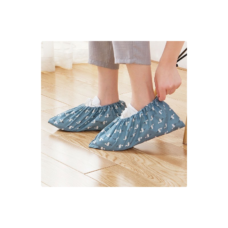 Washed Cloth Shoes Cover Thick Wear-resistant Foot Cover Home Indoor Dust Foot Cover Overshoes Flamingo Printed Shoe Accessories
