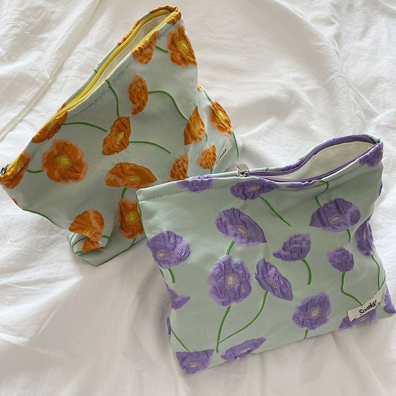 Women Travel Cosmetic Pouch Bag Large Capacity Make Up Storage Bags Fashion Relief Flowers Print Canvas Washing Pouch