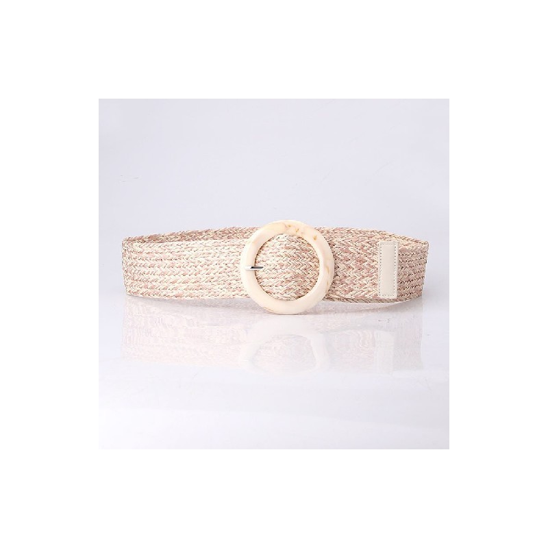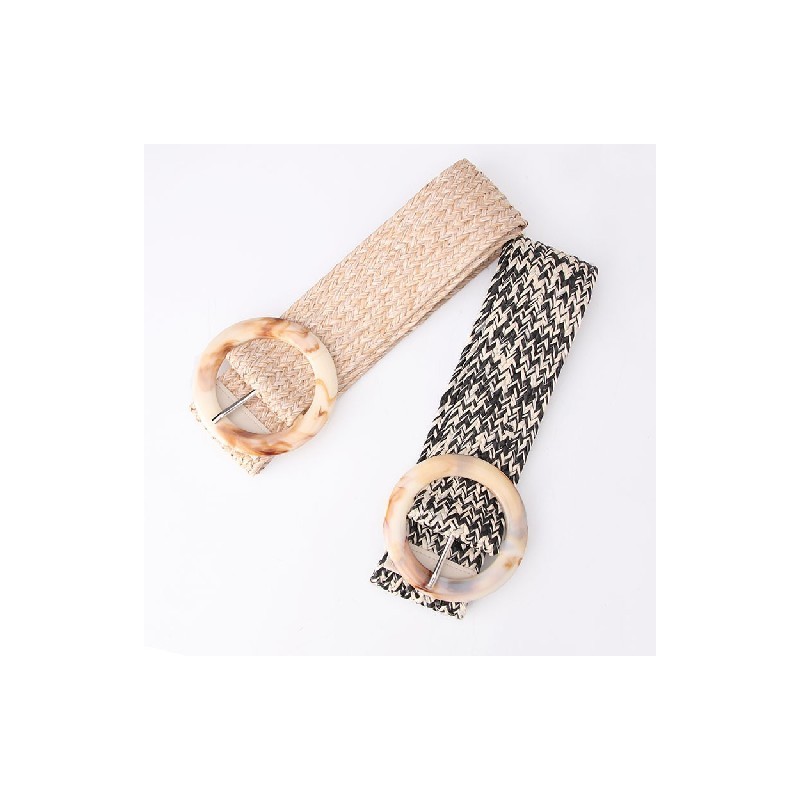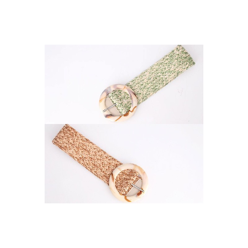 Summer Women Braided Elastic Belt Round Resin Buckle Vintage Bohe Straw Buckle Belt Dress Shirt Dress Belt Female Knitted Belt