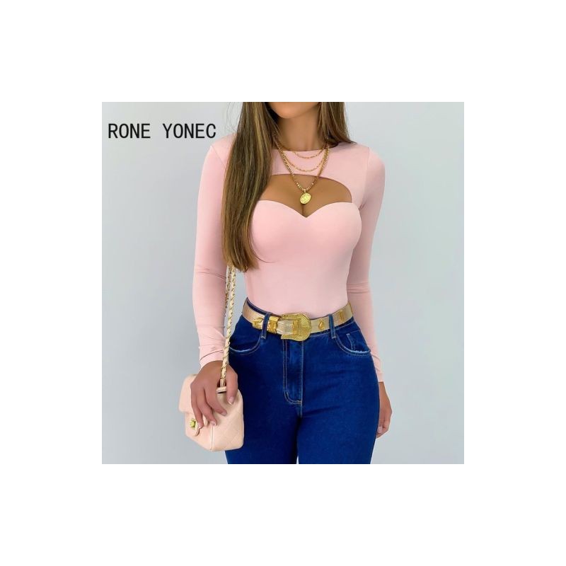 Női Chic Solid Basics Szexi hosszú ujjú Bodycon rózsaszín blúz