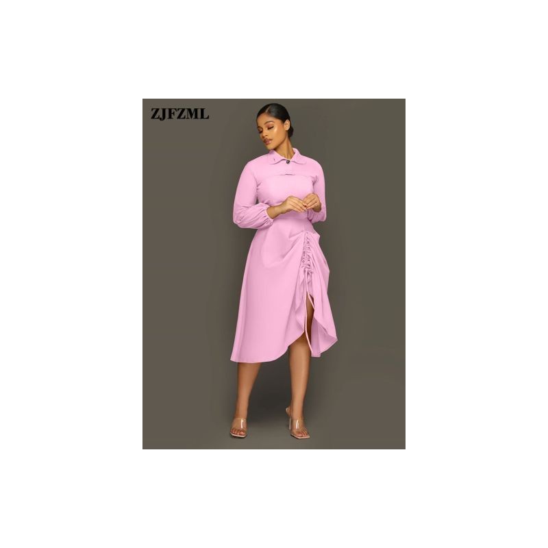 Office Lady Two Piece Club Outfit for Female Tracksuit Lapel Neck Long Sleeve Shawl Short Coat with Ruched Drawstring Tank Dress