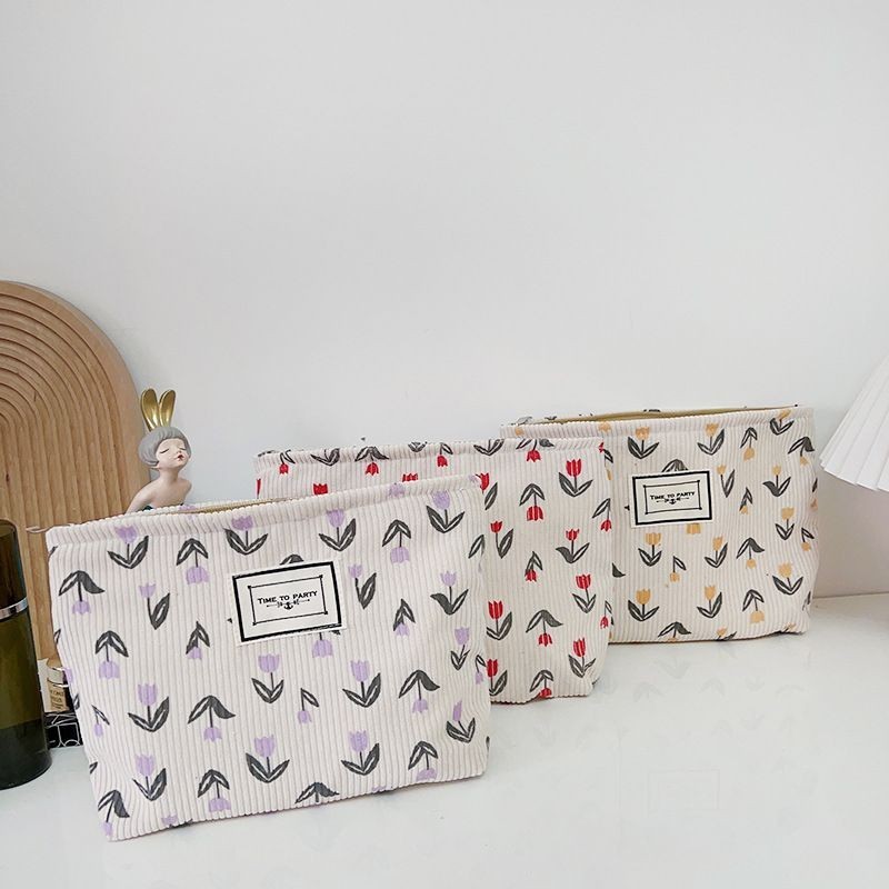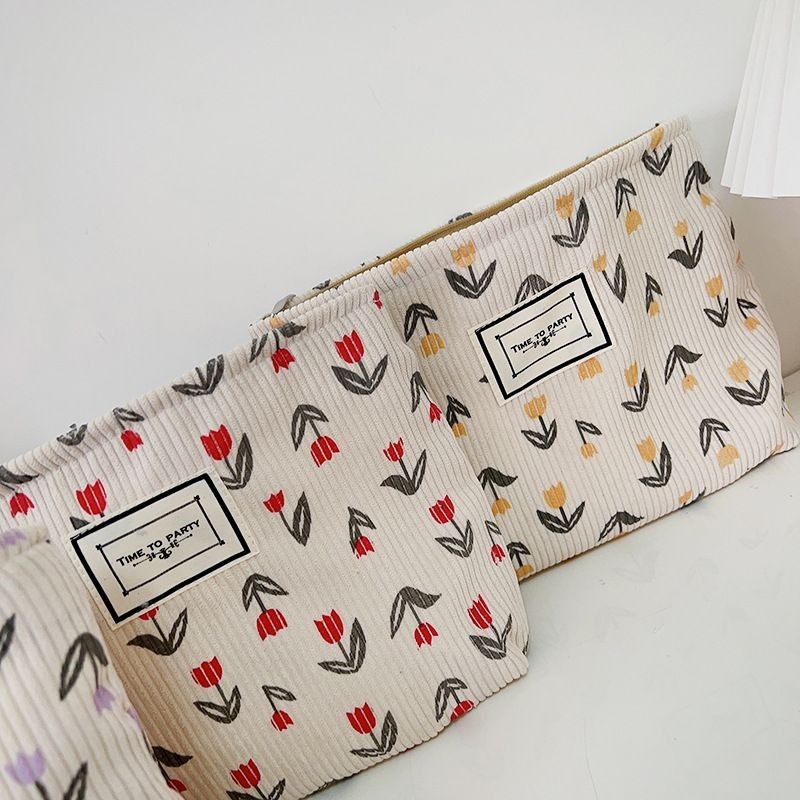 Corduroy Retro Female Cosmetic Bag with Soft Large Cute Flower Print Mobile Phone Change Pstorage Bag Cute Girl Makeup Bags Case