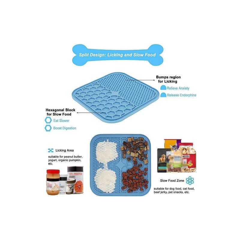 This pad has a unique side slot design to prevent food from spilling. It can be used when pet bathing, grooming.
