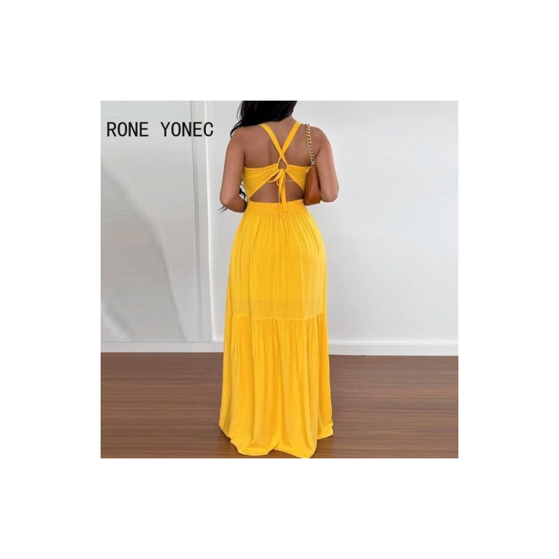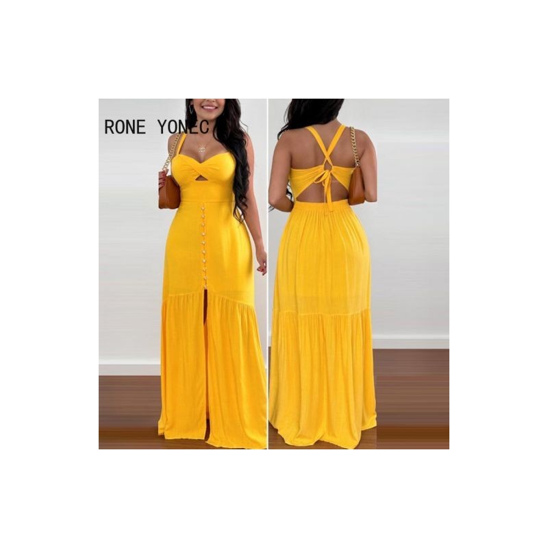 2023-as női elegáns, vastag pántos, fűzős gombos dekoráció Shigh Silt fodrokkal, maxi szexi ruhák