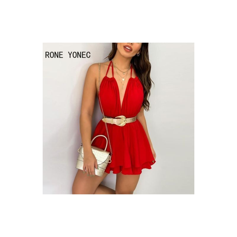 Elegáns női ruha Polkadot mintás fodros kötőfékes tankruha mini ruha nyári vakációs ruha