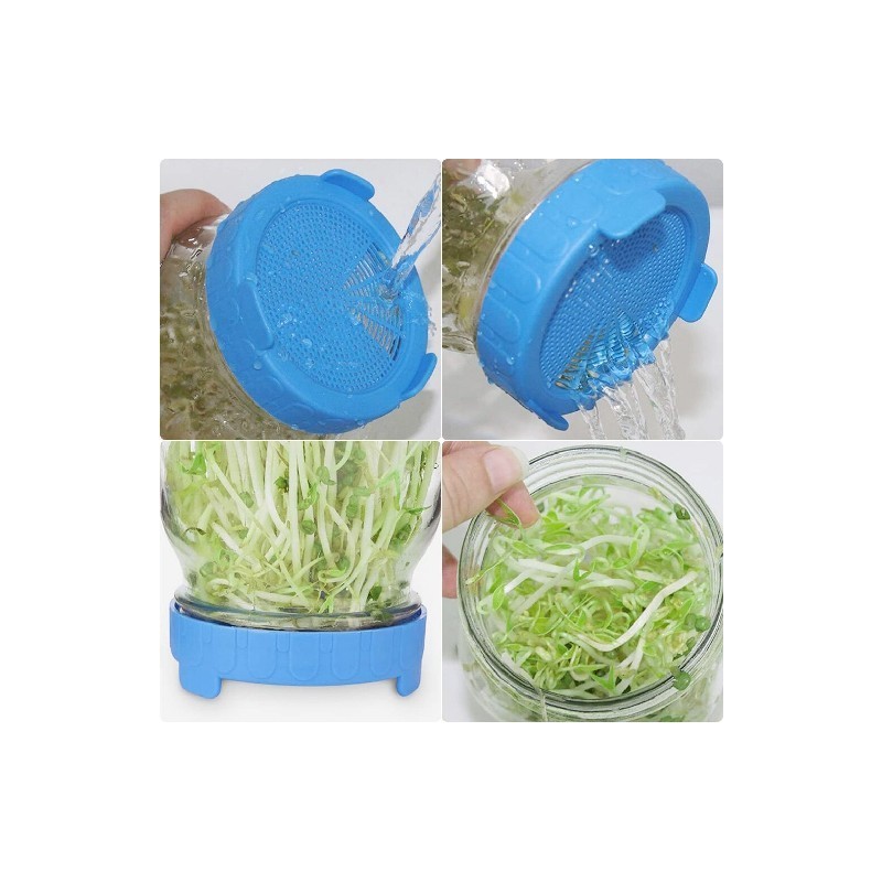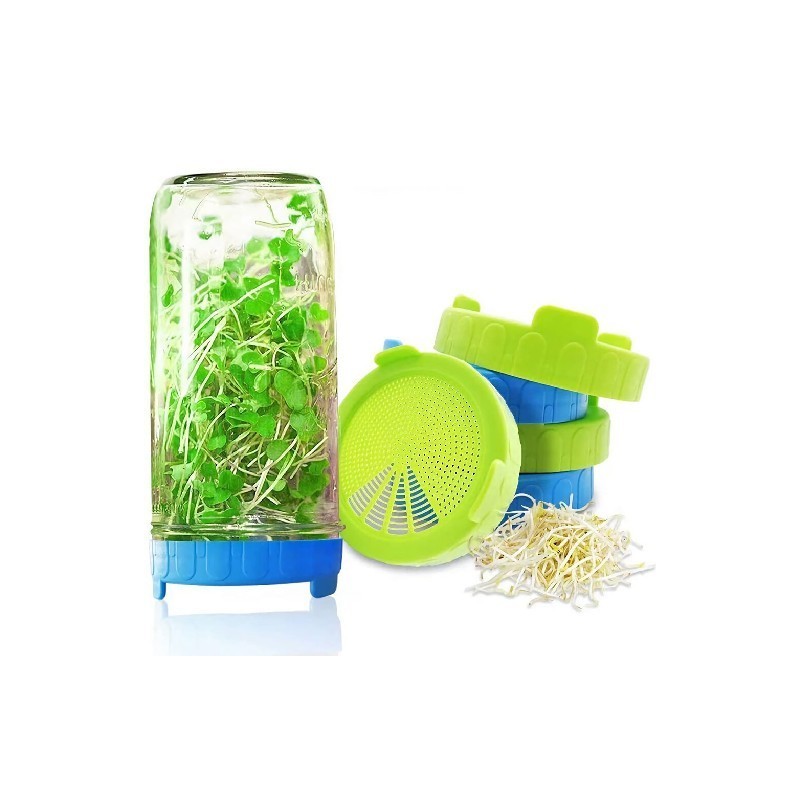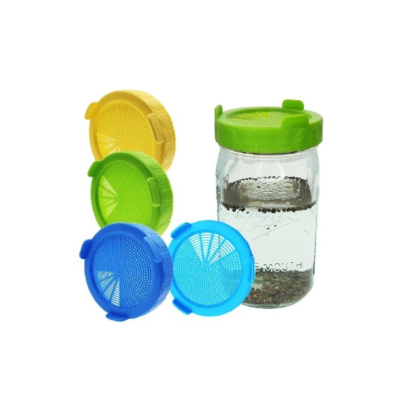 Széles szájú műanyag befőttesüveg csírázó fedél élelmiszer minőségű hálós csírafedél Vetőmag csírázása Mason Jar növényhez
