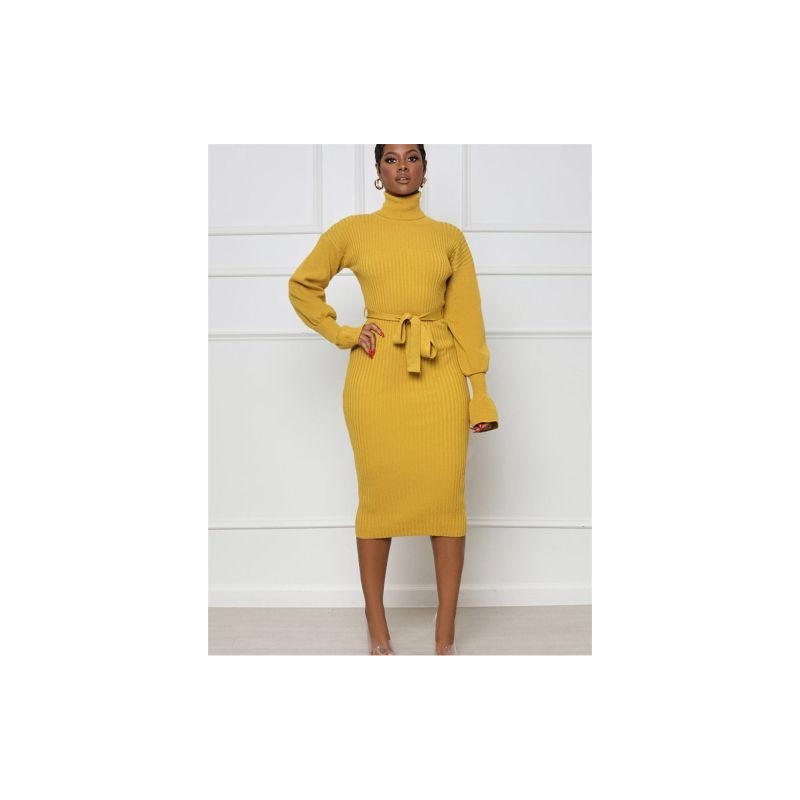 Akaily Fall Brown Knitted Maxi Dresses For Women Fashion 2022 Turtleneck Long Sleeve Elegants Dress Ladies Bandage Long Dress