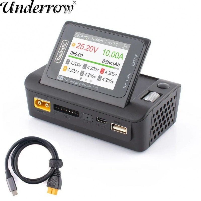ToolkitRC M9 600W USB Fast Charing DC Smart Charger Adjustable Screen Angle with Audio Function For 1-8S Lipo LiHv LiFe Battery