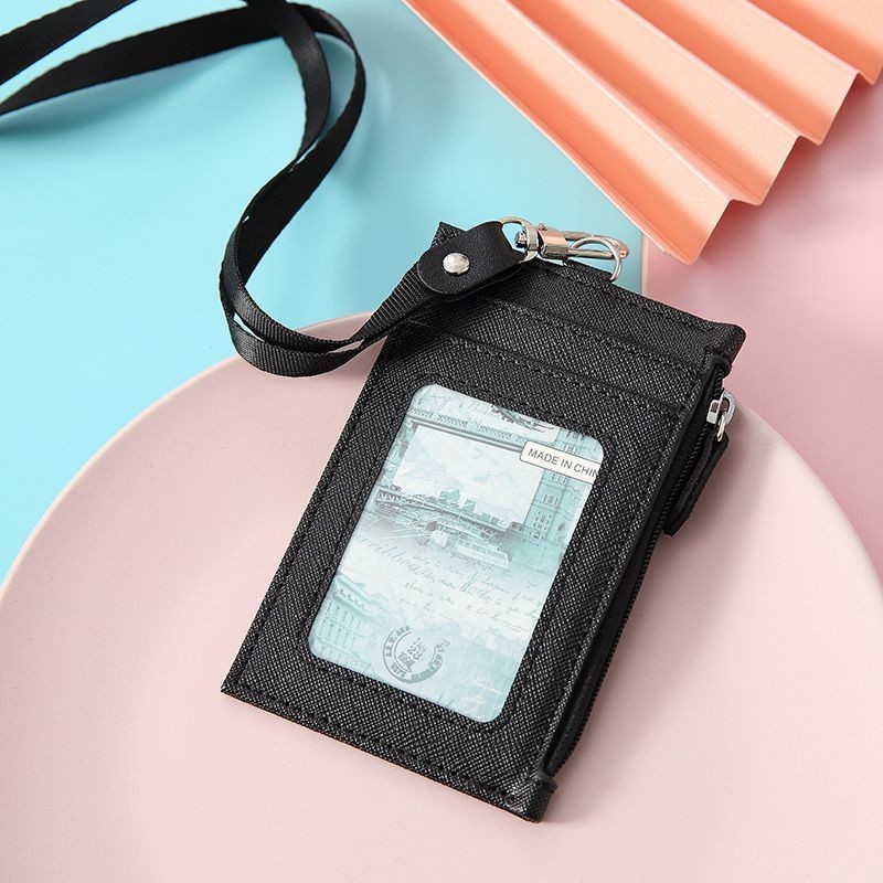 Pu Leather Coin Money Wallet Short ID Business Credit Card Holder Wallets with Neck String Small Purse Money Bag for Women