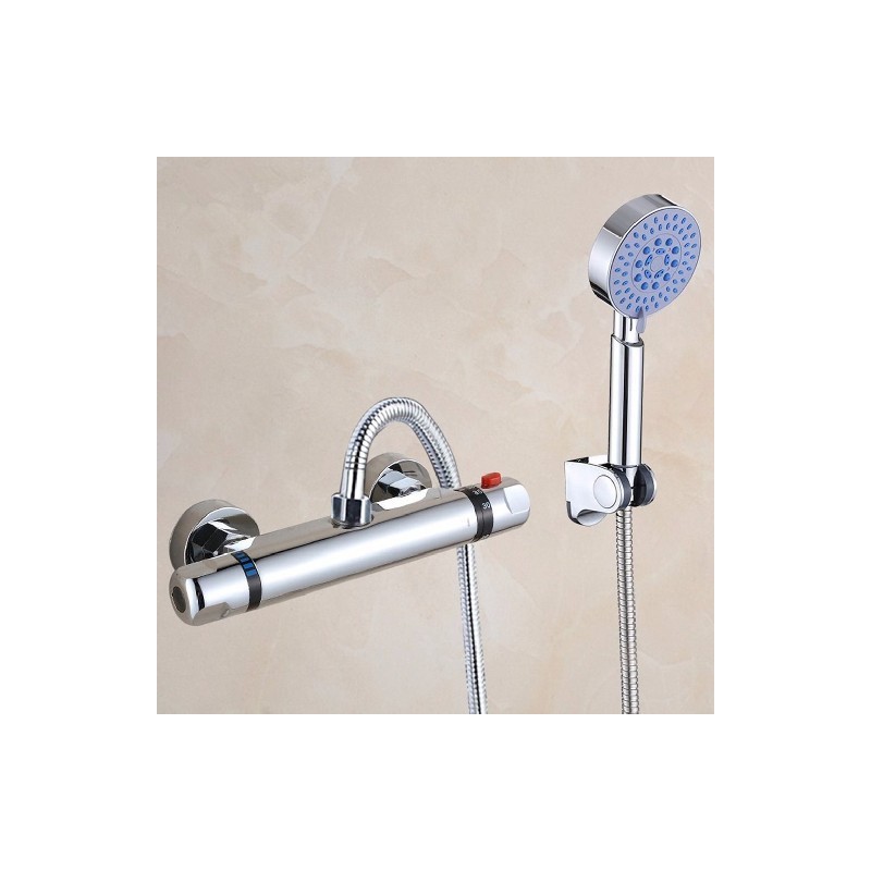 Fürdőszoba termosztatikus zuhany csaptelep sárgaréz króm keverő érték kettős fogantyús hőmérséklet szabályozó kád zuhany csaptelep falra szerelve