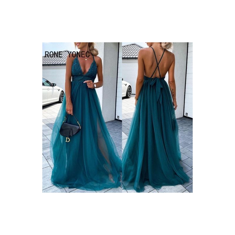 Női Crisscross hát nélküli csipkefoltos hálós báli ruha buli esküvői ruha