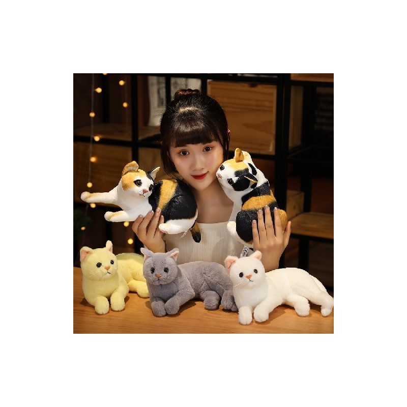 1pc 31cm Cute Lifelike 3 Colors Cat Plush Toys Simulation Lying Plush Cat Pillow Room Decor Ornaments Nice Gift for Kids Baby