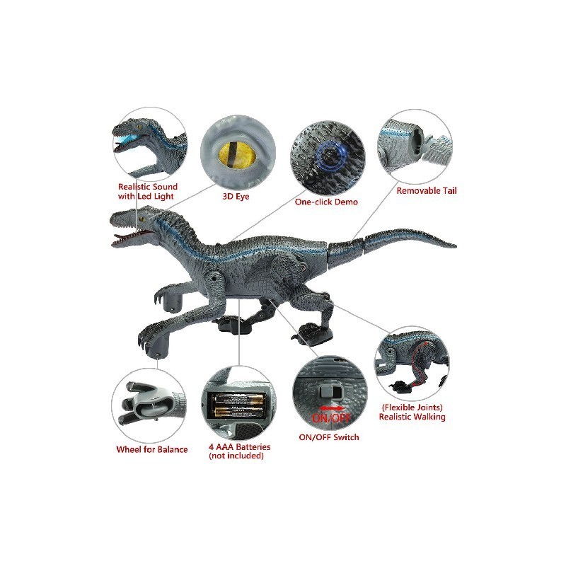 Super Realistic Walking RC Dinosaur Toys: Simulation Velociraptor Built-in 6 Realistic Dinosaur Roar can be easily controlled to move forward and backward like a real dino, twist the body, and turn left or right, accompanied by real roars and dazzling lights, and automatically One-Click Demo.