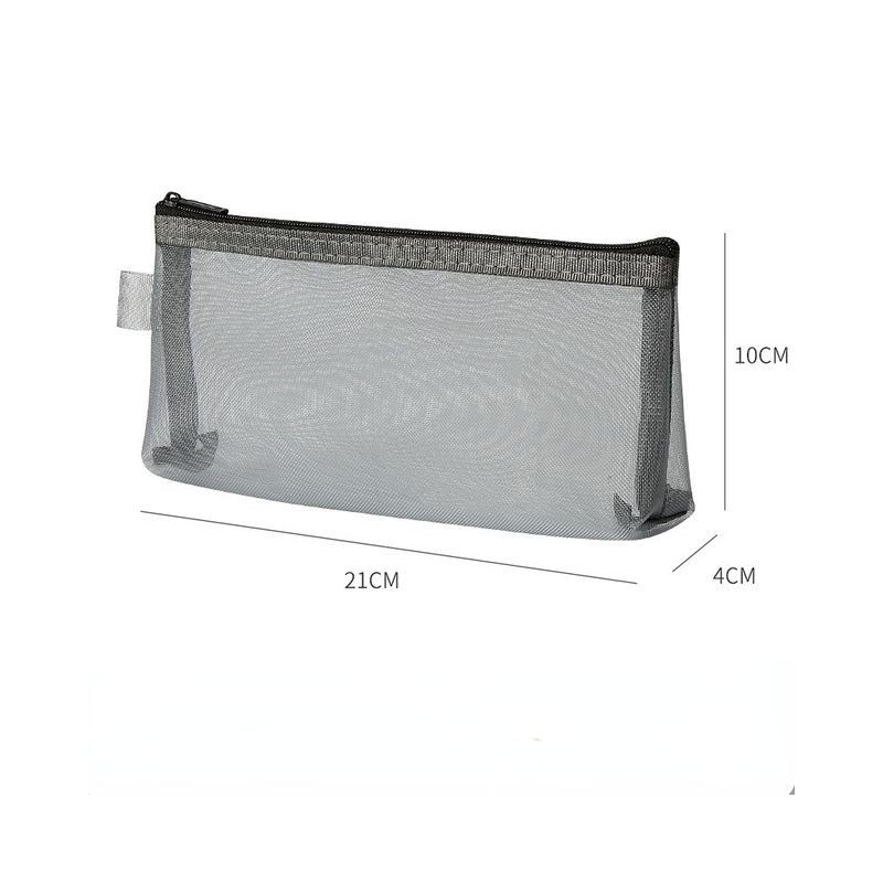 Gray Black Makeup Case Large Capacity Mesh Transparent Cosmetic Brush Bags Students Solid Color Zipper Nylon Pencil Case