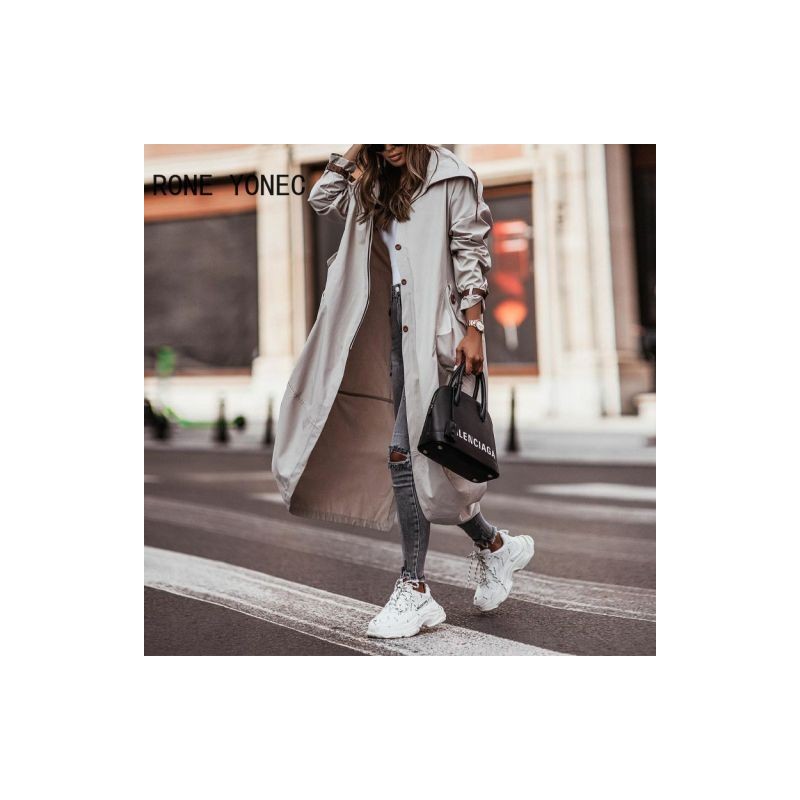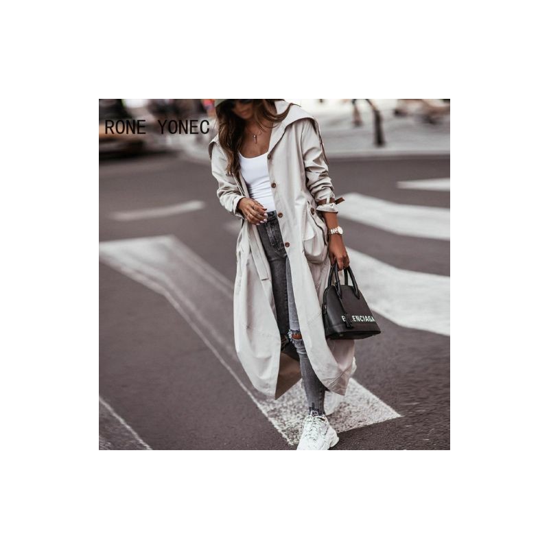 Women Casual Solid Single Breasted Pocket Design Belted Hem Trench Coat Jacket