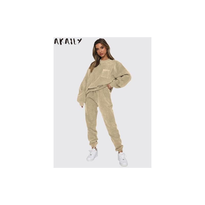 Akaily őszi fekete kordbársony 2 kétrészes készletek, női ruhák, 2022-es bő, hosszú ujjú felsők és nadrágszettek női téli szettek