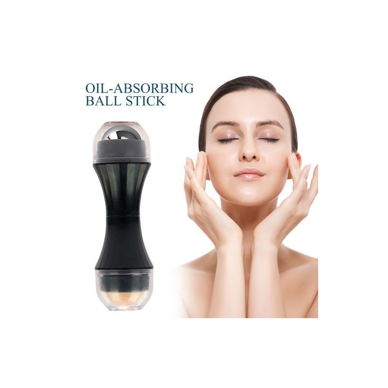 Portable Reusable Oil Skin Control Roller, Skin Care Tools, Dual Head with Volcanic Rolling Balls & Steel Balls, Oil Absorbing