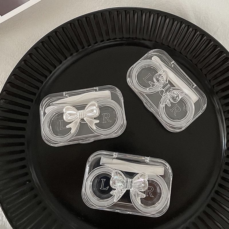Beautiful Transparent Laser Contact Lense Box Container Travel Accessaries Cute Bow Knot Contact Lens L R Cases Storage Holder