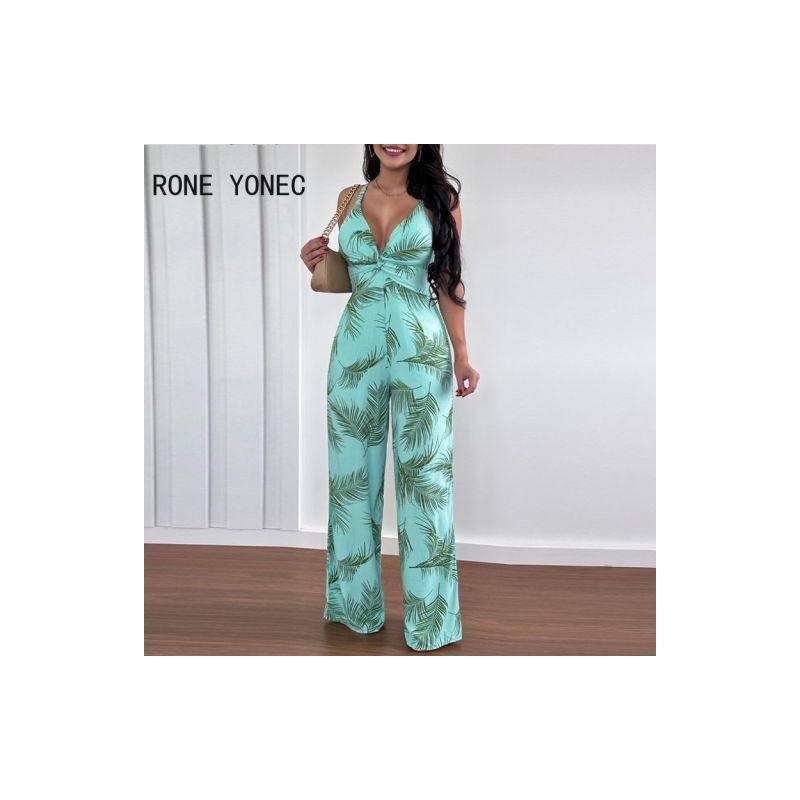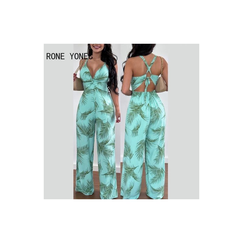 2023-as női ruhák, trópusi mintás, Crisscross, hát nélküli, széles lábú jumpsuitek