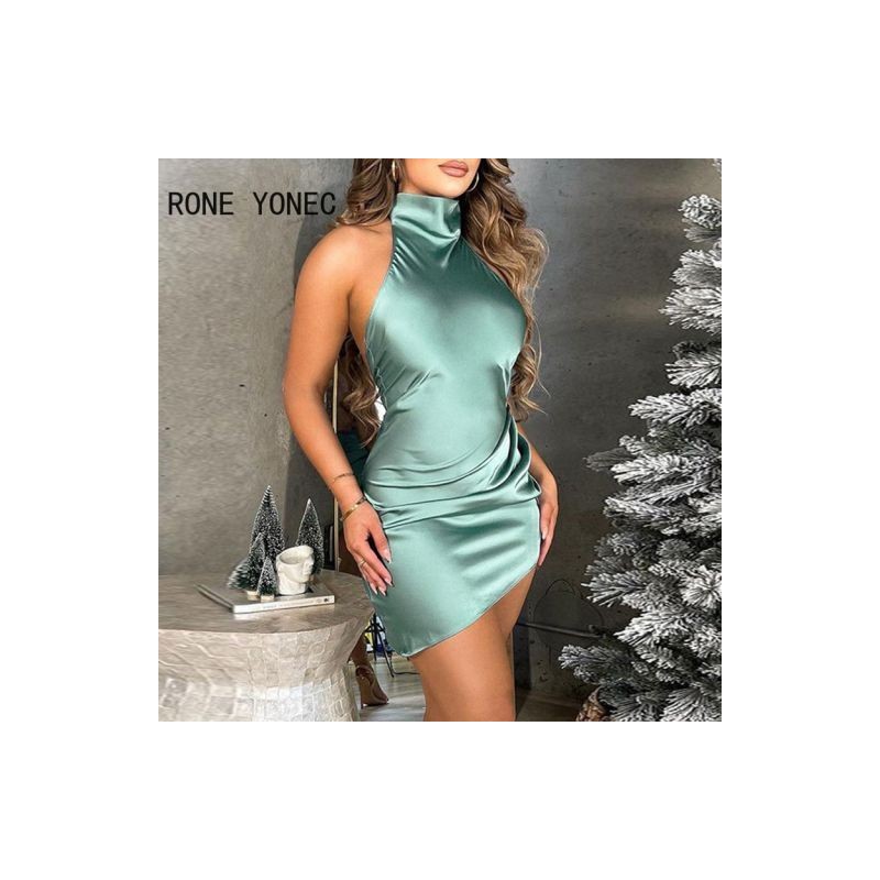 Női tömör, szexi kötőfék, ujjatlan mini szexi szatén hát nélküli partiruhák