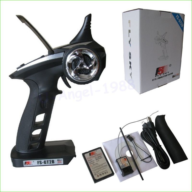 Flysky FS-GT2B FS GT2B 2.4G 3 csatornás pisztoly RC vezérlő /w vevő TX akkumulátor USB kábel fogantyú -- Bővített FS-GT2 GT2