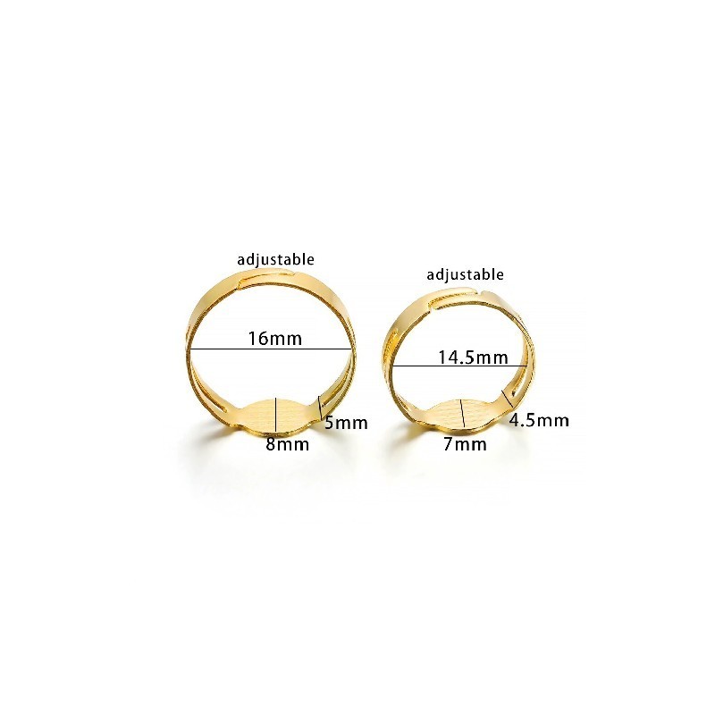 40PCS/lot 7/8MM Gold Plated Rings Adjustable Blank Ring Settings Findings For DIY Fashion Rings Jewellery Making Accessories