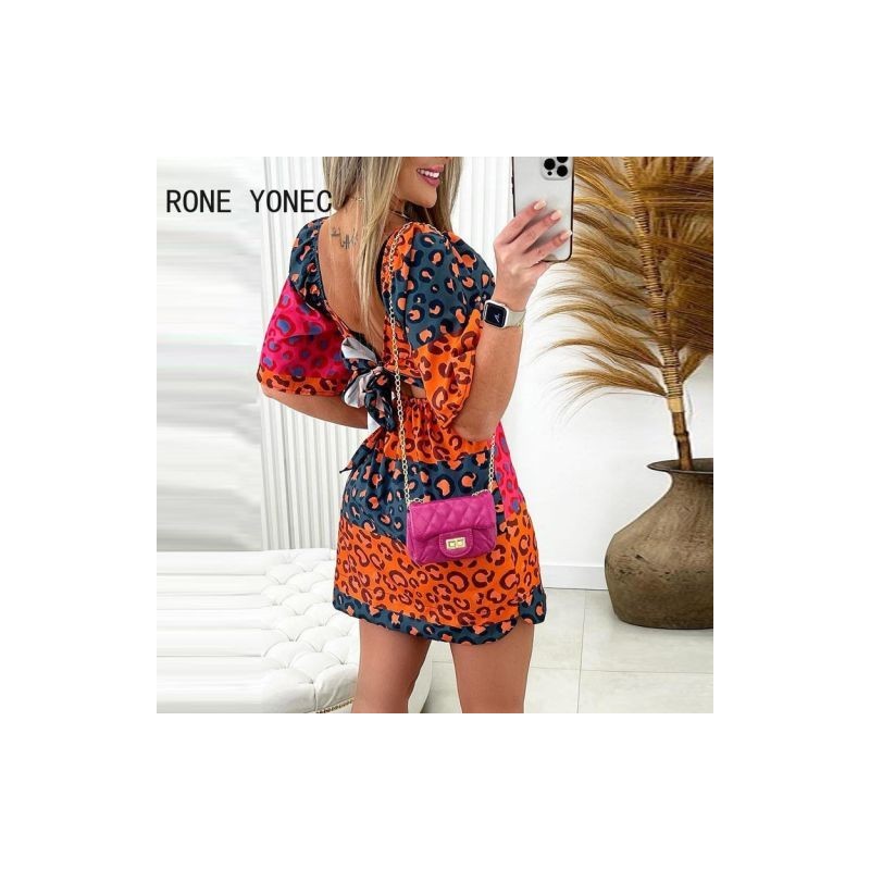 Women Outfit 2023 Y2K Backless Colorblock Leopard Print Dress A Line Dress Vacation Dress Women's dress