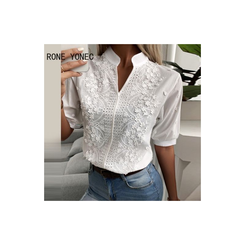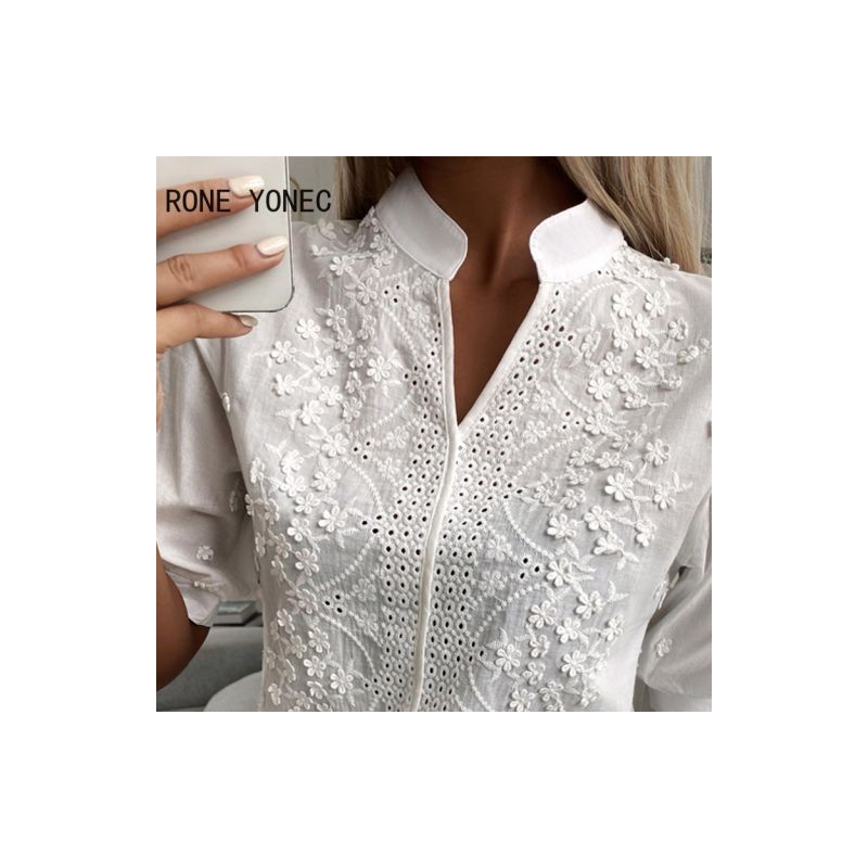 Női alkalmi, tömör, kivágott virágos, V nyakú, elegáns blúz