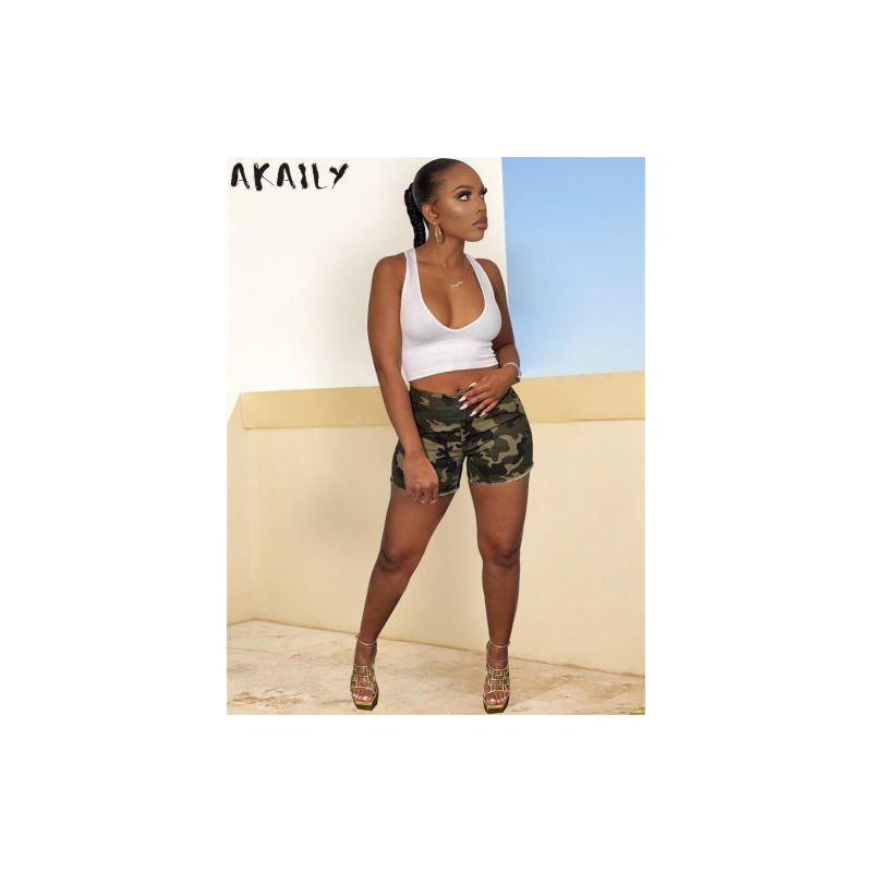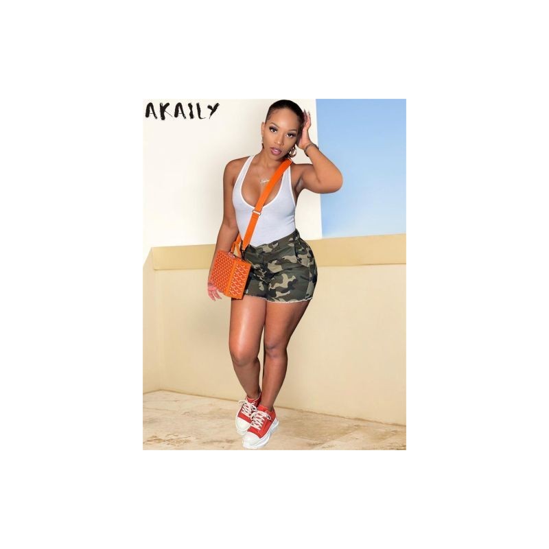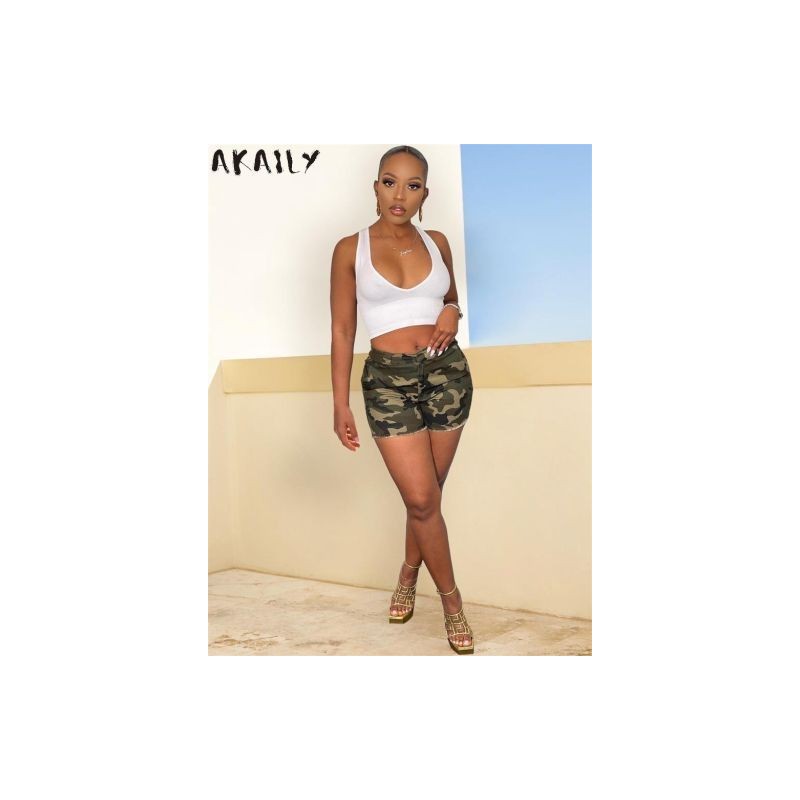 AKAILY Summer Streetwear Casual Shorts For Women 2022 High Waist Party Button Zipper Pocket Shorts Camouflage Shorts Women