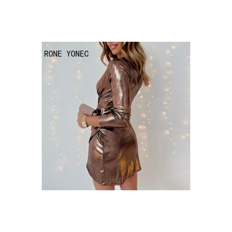 Női tömör hosszú ujjú, mély V nyakú parti miniruha Szexi ruhák