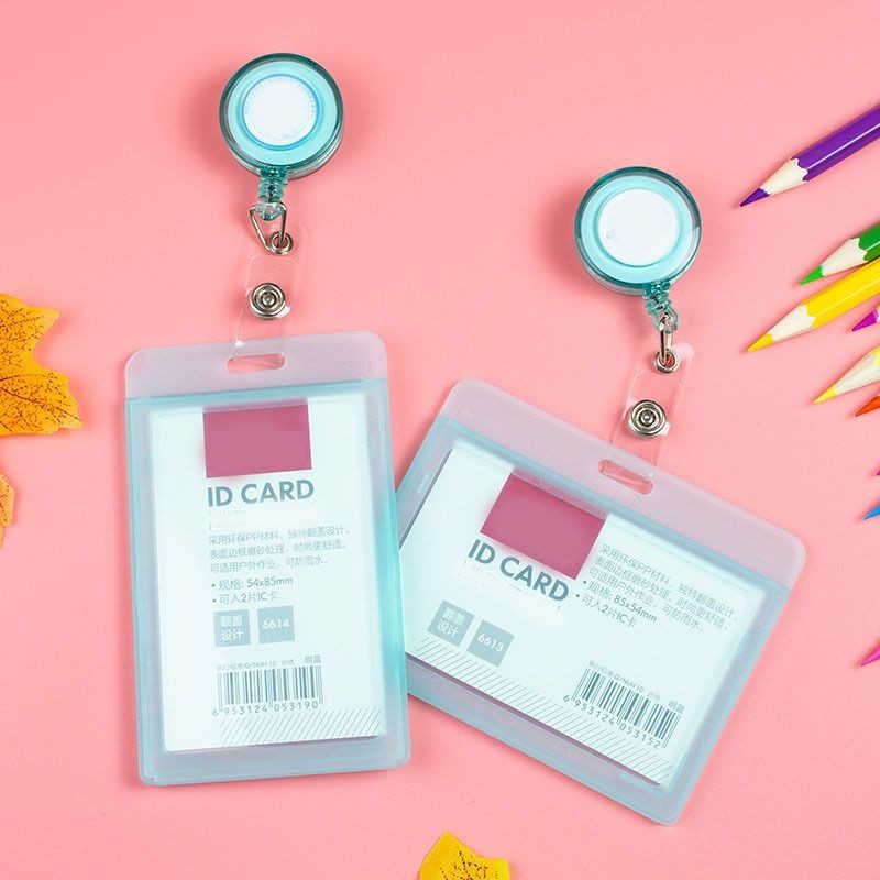 1PCS Simple Transparent Badge Holder Plastic Name Card Cover Bank Card Holder Id Card Holder Retractable Key Holder Accessories