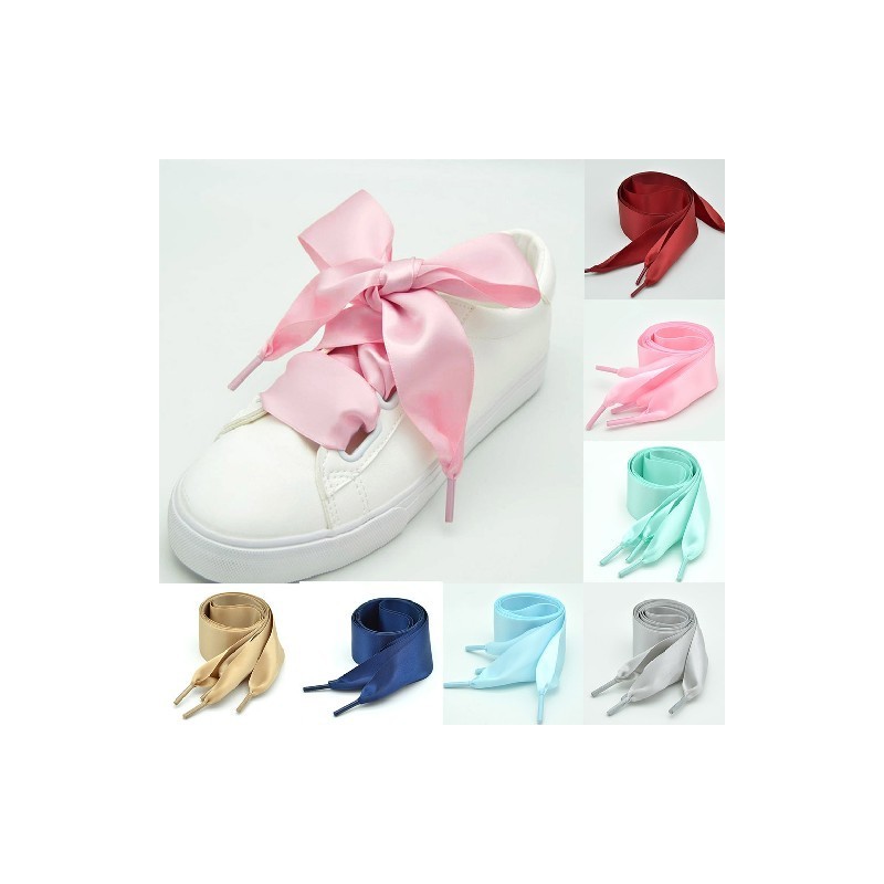 110cm Flat Satin Silk Flat Shoelaces Sweet Women Girls Ribbon Shoe Laces Sneakers 4cm Wide Smooth Shoe Strings Cordones Zapato