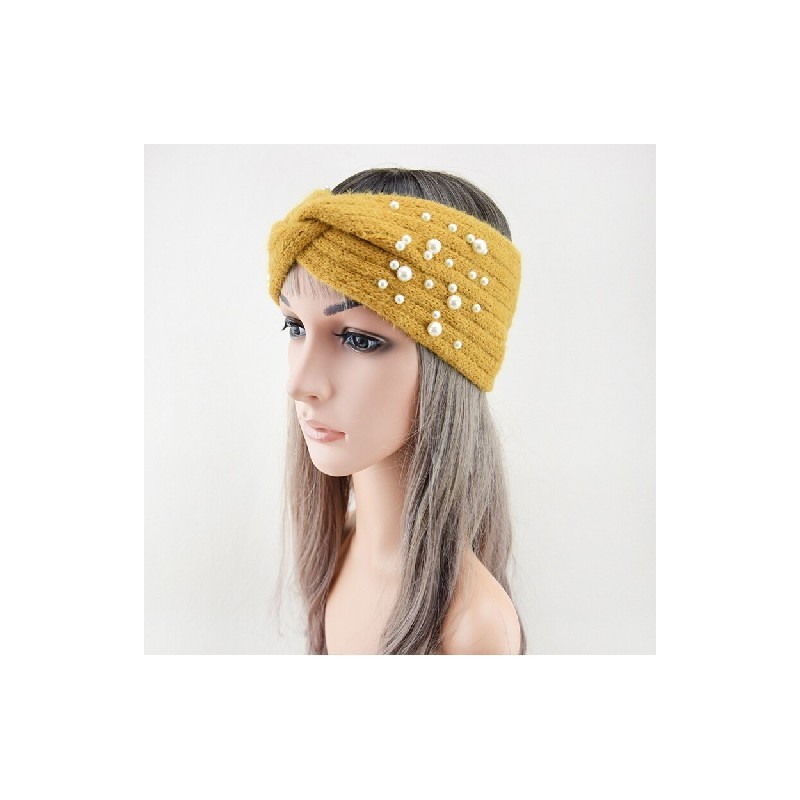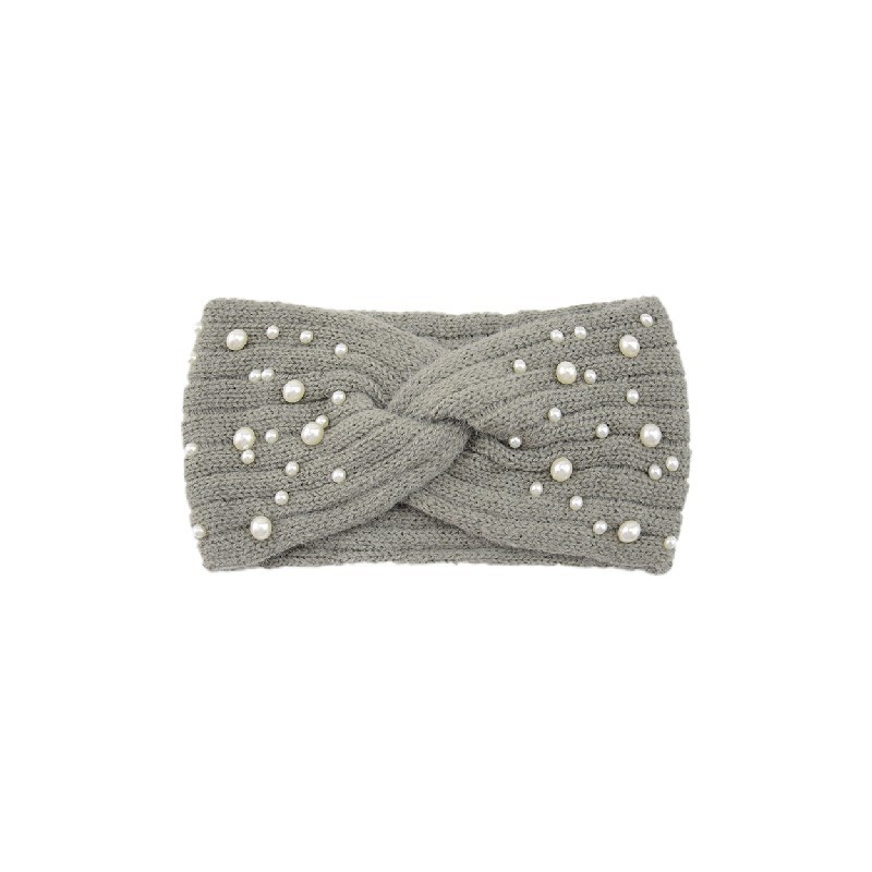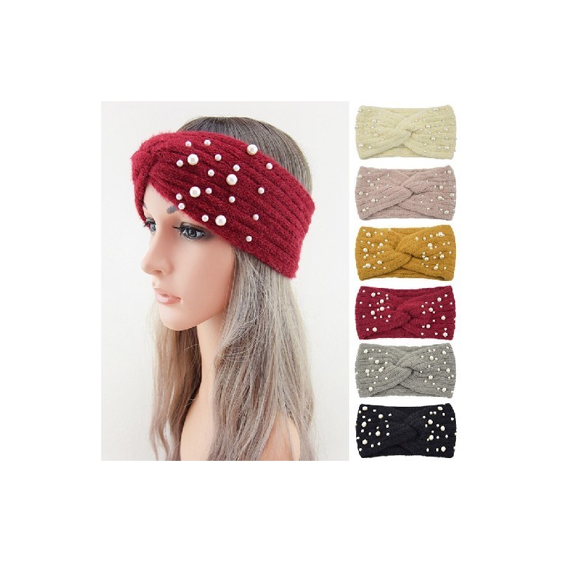 Handmade Pearls Knitted Cross Headband Women Wide Hairbands Autumn Winter Female Ear Warmer Windproof Ear Protection Head Cover