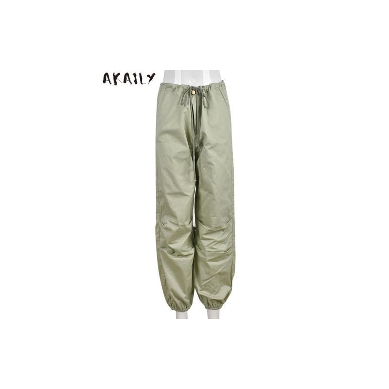 Akaily Fall Green Baggy Pants For Women 2022 Streetwear High Waist Bandage Sweatpants Female Drawstring Casual Long Trousers