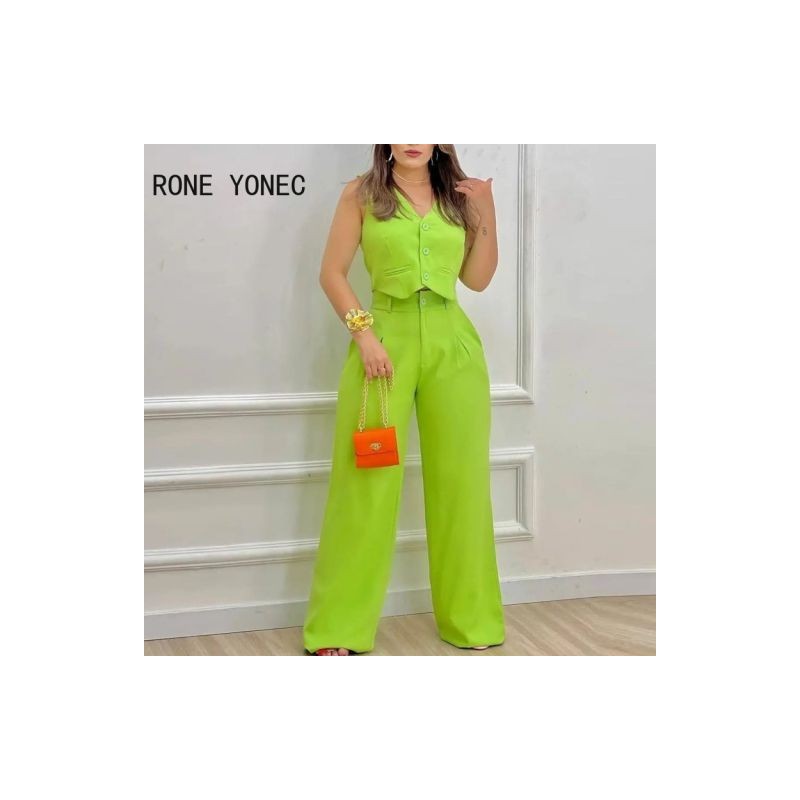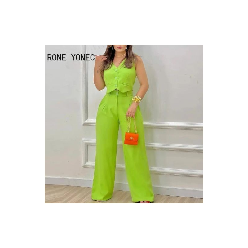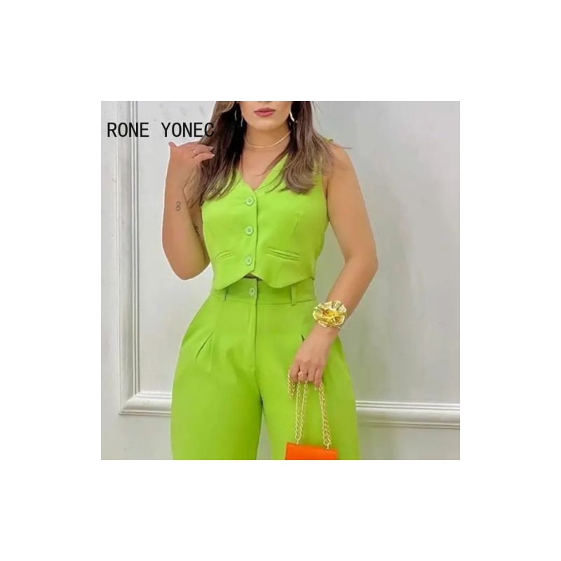 Női tömör, elegáns aszimmetrikus mellény felső ujjatlan hamis zsebes egyenes nadrág szettek