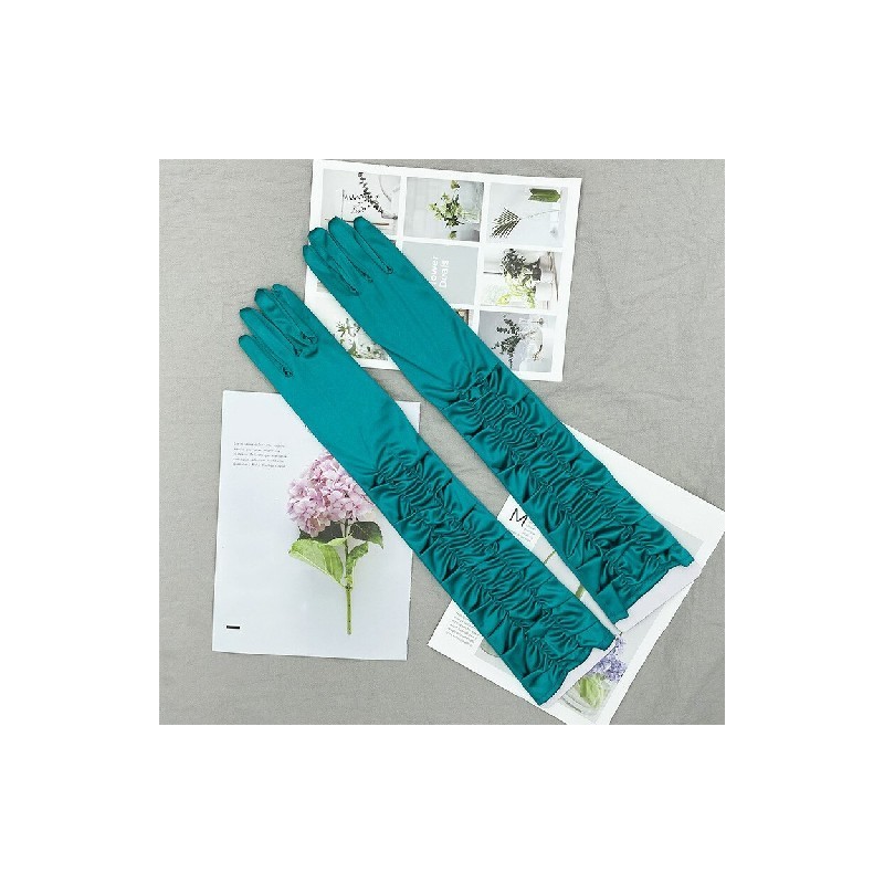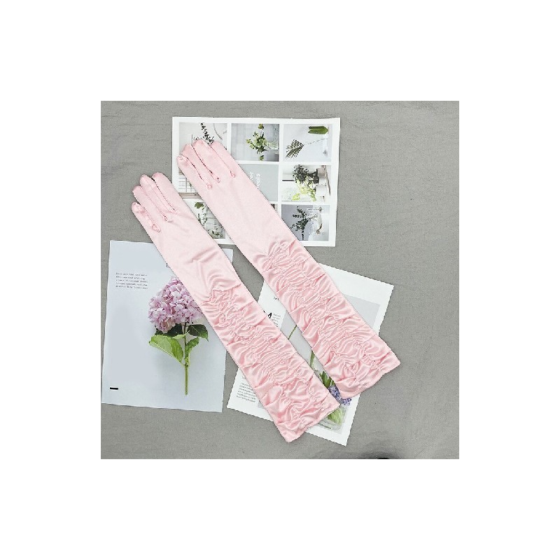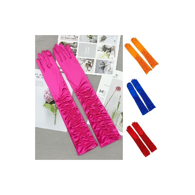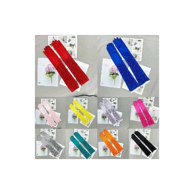 51cm Pleated Satin Long Gloves Disco Elegant Gloves Bride Wedding Accessories Bridal Purple Black Ivory Ladies Pageant Dress