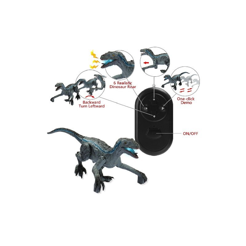 Super Realistic Walking RC Dinosaur Toys: Simulation Velociraptor Built-in 6 Realistic Dinosaur Roar can be easily controlled to move forward and backward like a real dino, twist the body, and turn left or right, accompanied by real roars and dazzling lights, and automatically One-Click Demo.