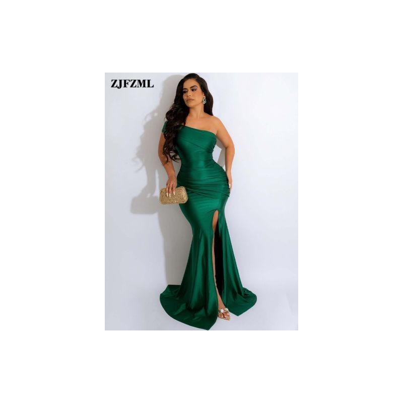 One Shoulder Side High Split Evening Dress Woman Sexy Sleeveless Backless Floor Length Dresses Elegant Fashion Body-shaping Robe