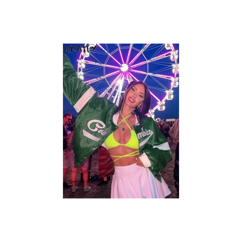 Akaily Fall Letter Embroidery Baseball Jackets For Women 2022 Green Long Sleeve Winter Coats Female Bomber Varsity Jackets