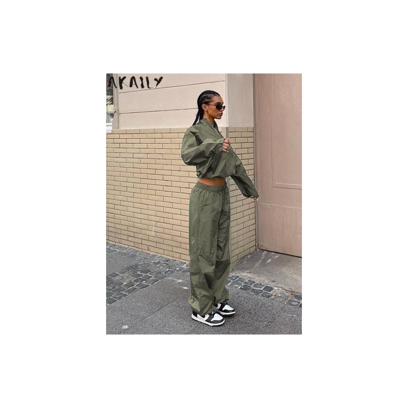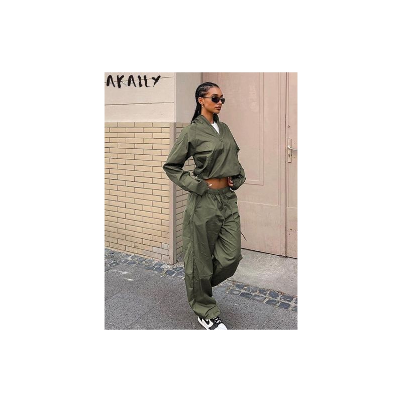 Akaily Summer Casual Loose 2 kétrészes készletek Női ruhák Utcai ruhák 2022-es hosszú ujjú felsők és nadrágszettek női