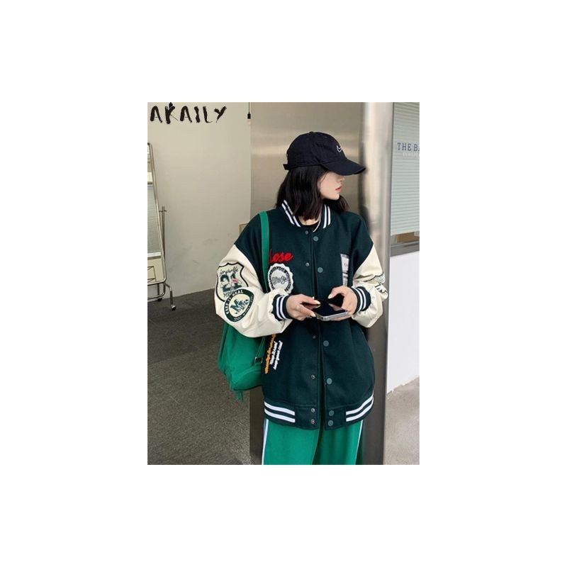 Akaily Fall Streetwear kabát nőknek 2022 hosszú ujjú felsők dzsekik női patchwork alkalmi pu bőrkabátok egyetemi kabátok