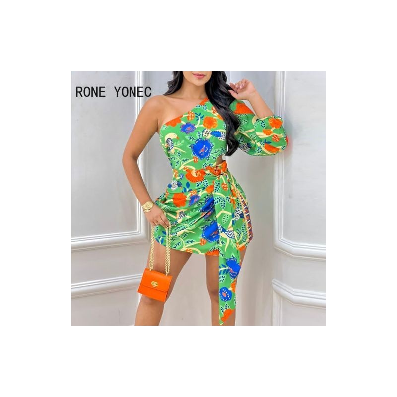 Női elegáns, tömör, egy vállú, hosszú ujjú, átlós gallérral felfűzött, szexi szoknya szettek