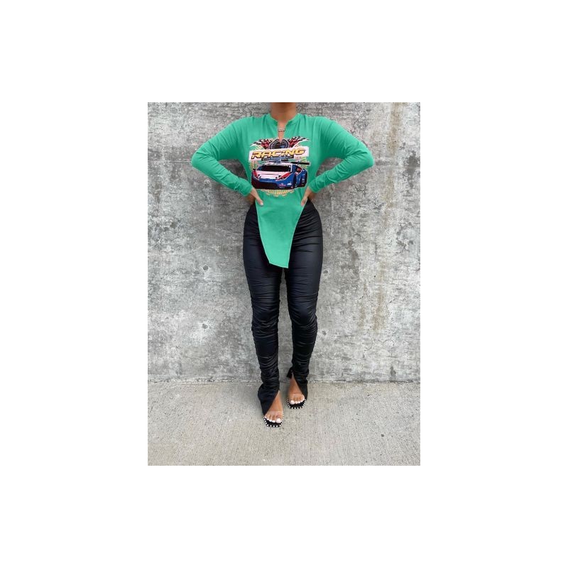Akaily őszi fekete grafikus pólók női divatnak 2022 O nyakú, hosszú ujjú aszimmetrikus felsők Női laza alkalmi nyomtatott felsők