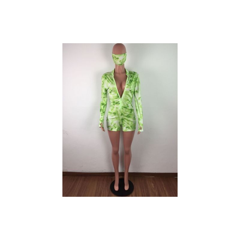 Streetwear nyakkendő festéknyomat egy darabból készült játszóruha Vintage Deep V nyakú hosszú ujjú sportos body Active Zipper elöl Bodycon Rompers