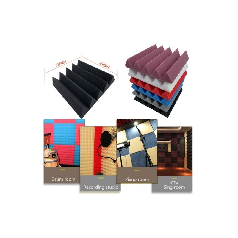 Applied to: Studio, Piano room, Drum room, Anchor`s room, Home Theater, KTV, Meeting rooms, Instrument rooms, etc. soft sponge, no dust, high density; Pyramid sound-absorbing sponge with beautiful appearance and good acoustic characteristics, its greatest feature is: due to its pyramid shape, it provides little diffusion, it makes you sound more dynamic. together with the other products, consisting of a wide band absorber, the effect is very good. colour:Black/White/Red/Purple/Gray/Blue Material:High density flame retardant sponge size: 25x25x5cm Package Contents: 1 x Soundproof Sponge
