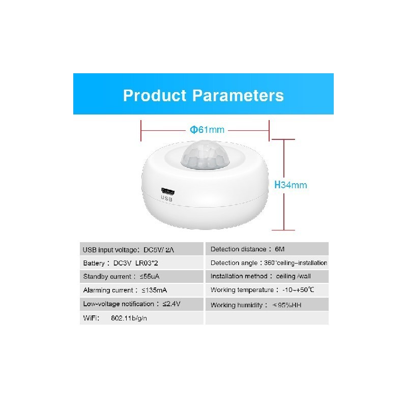 Tuya WiFi PIR Motion Sensor Wireless Infrared Detector Security Burglar Alarm Sensor Smart life APP Control Compatible