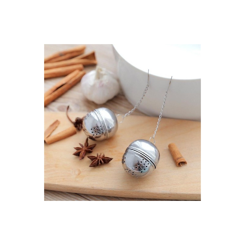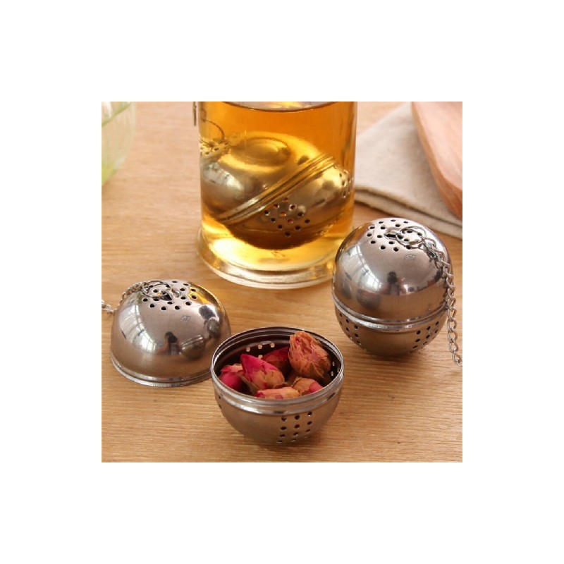 Új, rozsdamentes acél golyós tea infuser hálós szűrőszűrő akasztóval laza tealevél fűszergolyó kötéllánccal Otthoni konyhai eszközök