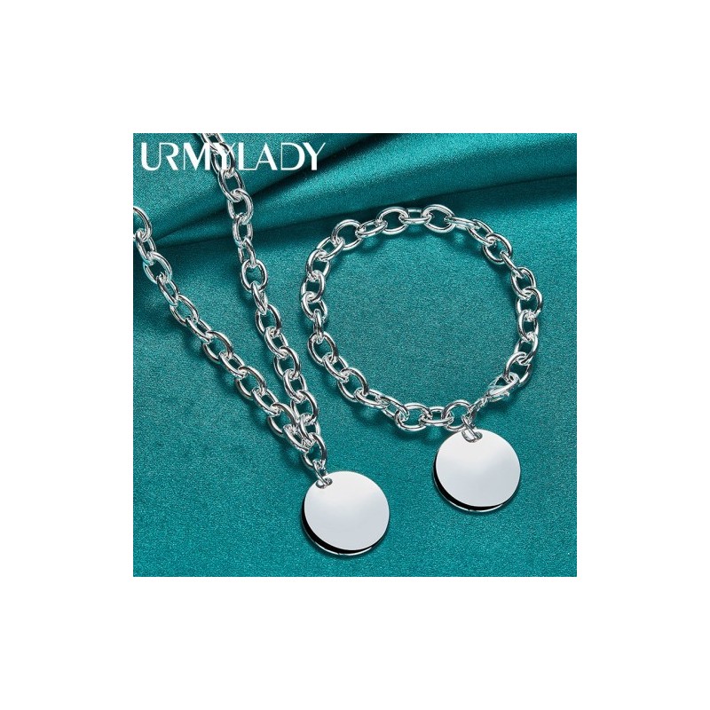 URMYLADY 925 Sterling Silver Round Brand Bracelet Necklace Jewelry Set For Women Fashion Charm Lobster Clasps Wedding Party